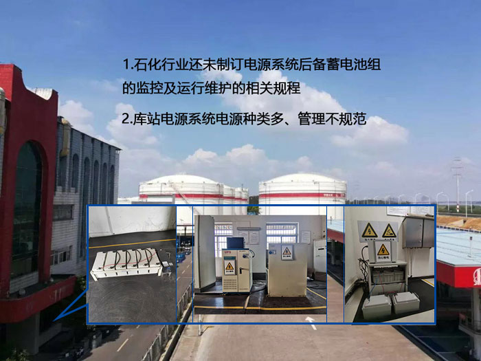 石化行業(yè)的生產(chǎn)、存儲裝置大多是易燃易爆的,而這些易燃易爆的生產(chǎn)裝置目前幾乎都是采用DCS系統(tǒng)和ESD系統(tǒng)進(jìn)行控制和操作。這類系統(tǒng)是不允許瞬間斷電的,要求后備電源系統(tǒng)具有很高的可靠性來滿足生產(chǎn)系統(tǒng)的安全。而當(dāng)前石化行業(yè)還未制訂電源系統(tǒng)后備蓄電池組的監(jiān)控及運(yùn)行維護(hù)的相關(guān)規(guī)程,運(yùn)維管理混亂,投入大、效率低,無法滿足應(yīng)急保障需求。