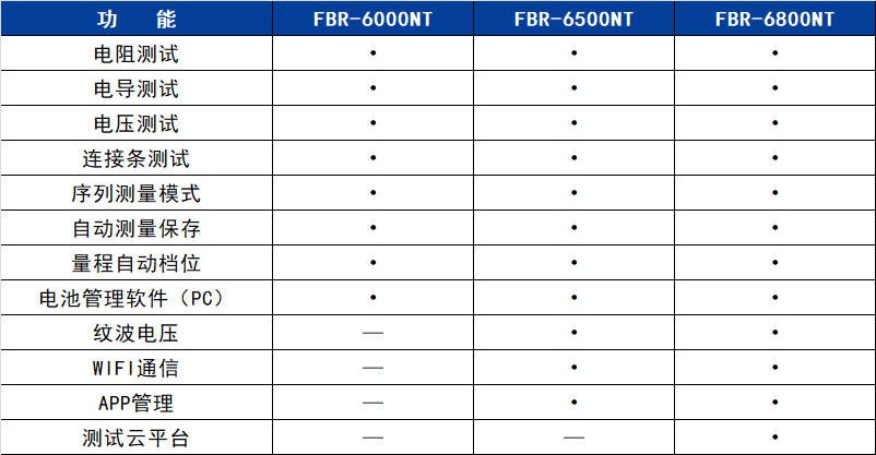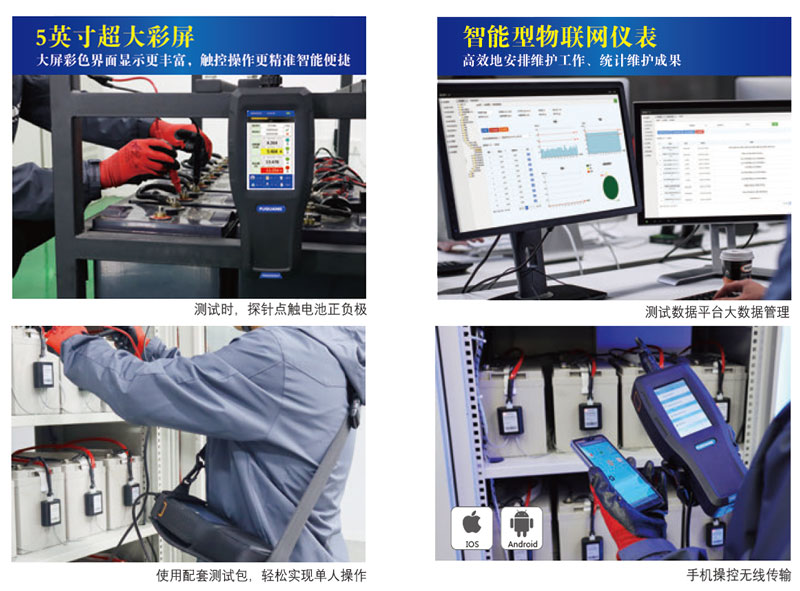 FBR-6000NT系列蓄電池內阻測試儀是欧宝体育新一代手持式蓄電池測試儀,可快速、直觀、方便地判斷電池(鉛酸電池、磷酸鐵鋰電池及鎳鎘電池等)劣化情況,具有精確度高、重復一致性好、抗干擾性強的特點;支持wifi無線傳輸,測試數據可上傳至云管理平臺,支持手機APP控制,支持任務工單化派發,是電池快速巡檢的理想儀表。