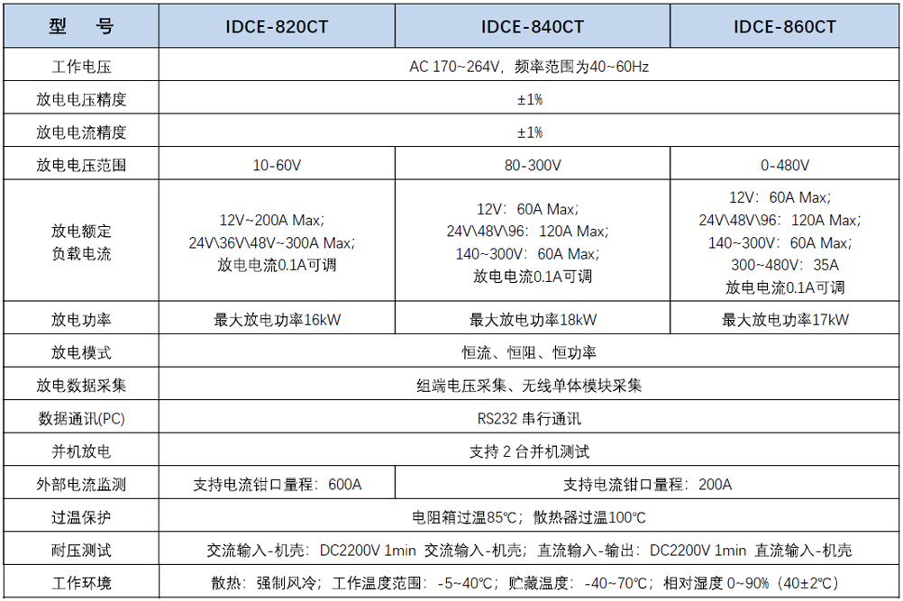 IDCE-820/840/860CT電池寬電壓放電容量測試儀采用寬電壓設計,一臺儀表就可滿足多種電壓等級的電池組測試。