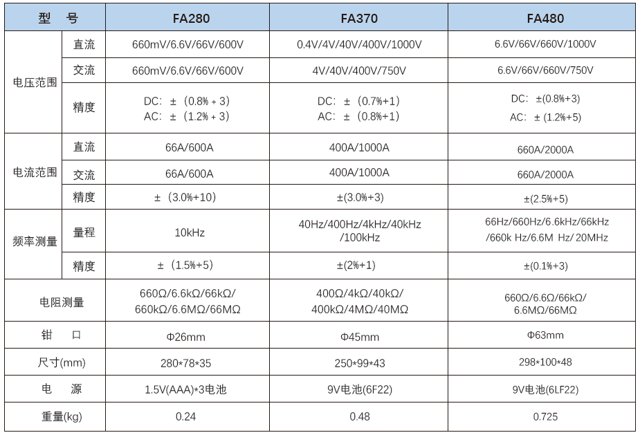● 具有鉗頭測頻功能,鉗頭照明功能(F280)